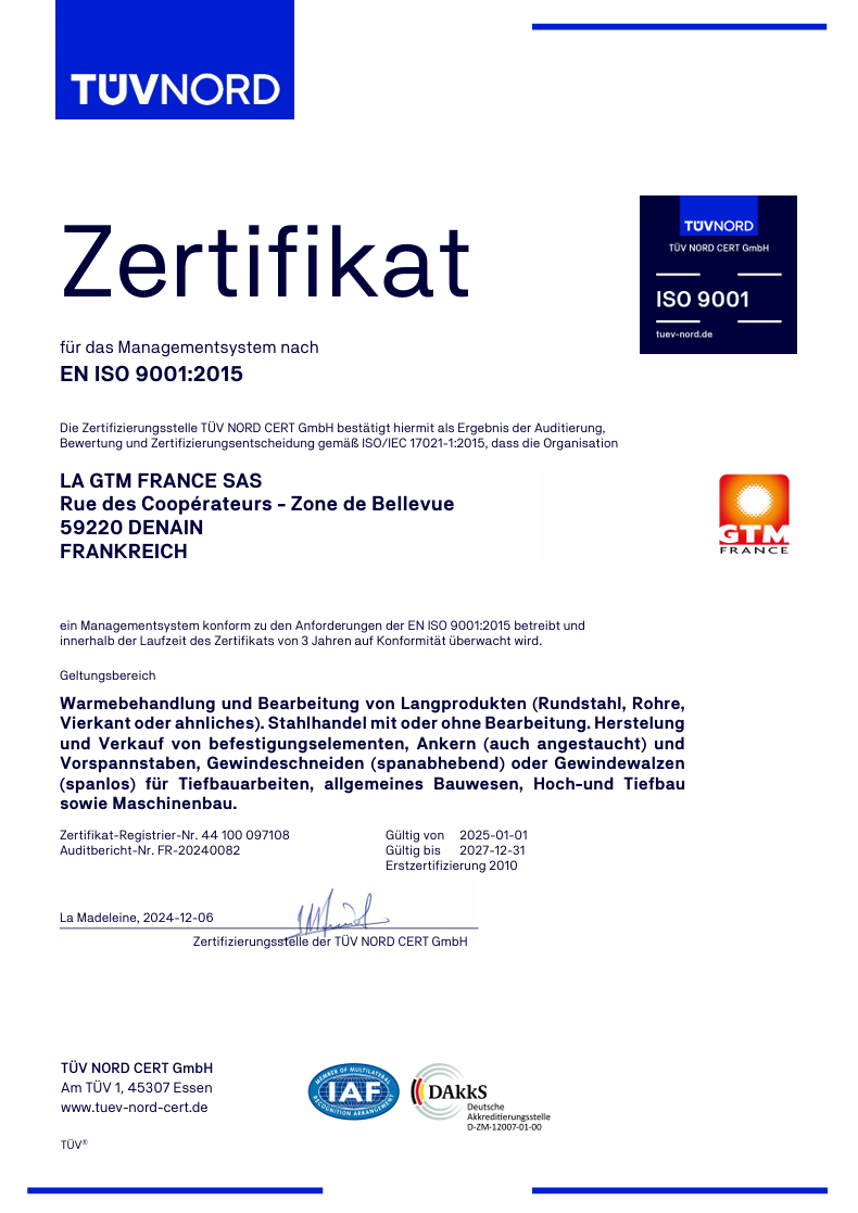 Unser Betrieb ist besonders auf die Wärmebehandlung von Stabstählen und Rohren in legierten und unlegierten Qualitäten spezialisiert. Unsere Kompetenz beruht auf 20 Jahren Erfahrung und Forschung. La GTM France ist DER Spezialist für Wärmebehandlung sowie Be- und Anarbeitung. Dank unserer flexiblen Organisation sowie stetiger Innovation und Investition sind wir in der Lage auch die anspruchvollsten und stetig sich wandelnden Wünsche unserer Kunden zu erfüllen.